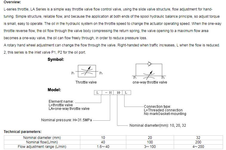 L type throttle valve and LA type one-way throttle valve