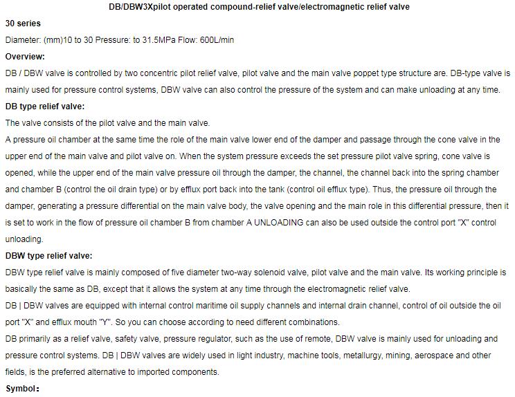 DB/DBW 5X series pilot operated relief valve / electromagnetic relief valve